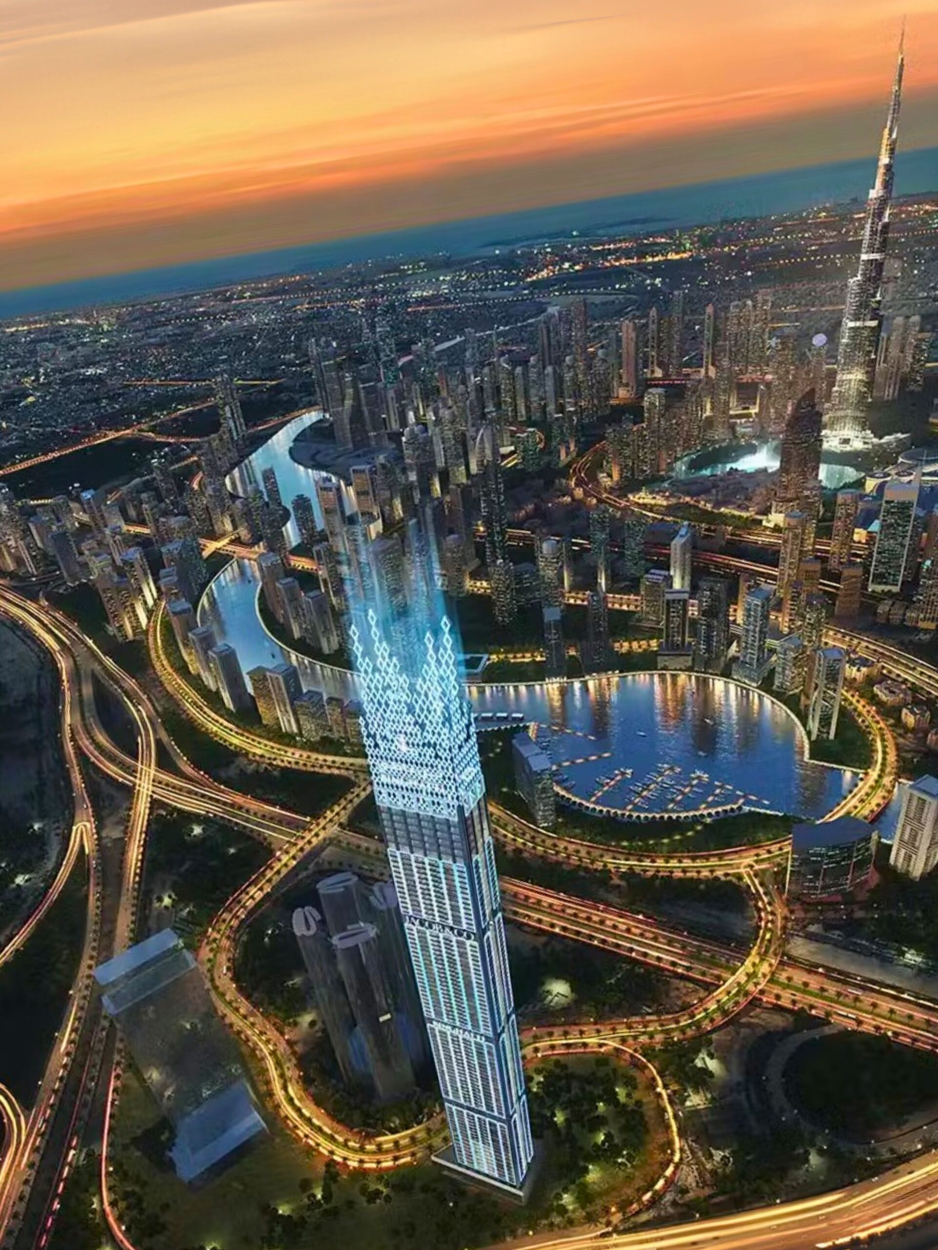 Burj Binghatti Jacob & Co Residences is a collaboration between Binghatti Developers and the luxury jewelry and watch company, Jacob & Co. This “hypertower” is under construction and is planned to be the tallest residential building in the world, surpassing Central Park Tower in New York City.